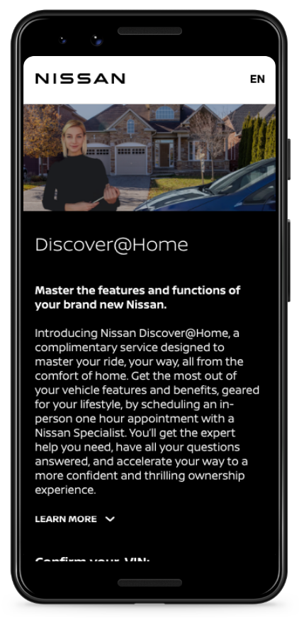 Nissan Discover@Home offers a complimentary service that brings the expertise of a dedicated Nissan Specialist right to your doorstep. This personalized experience allows you to explore and uncover the various benefits and features of Nissan vehicles tailored to suit your unique lifestyle. Without stepping outside your home, you can engage in an informative and interactive session with a knowledgeable specialist who will guide you through the array of options, answer your questions, and provide valuable insights to help you make an informed decision.